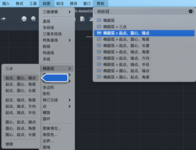将光标悬停在列表中的某个命令上,箭头会指示其位置。