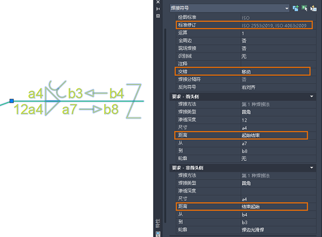 可以在“特性”选项板中查看和修改所有焊接符号特性。