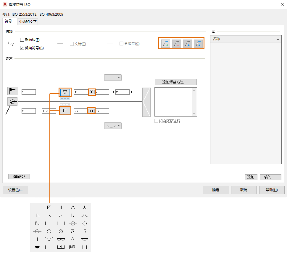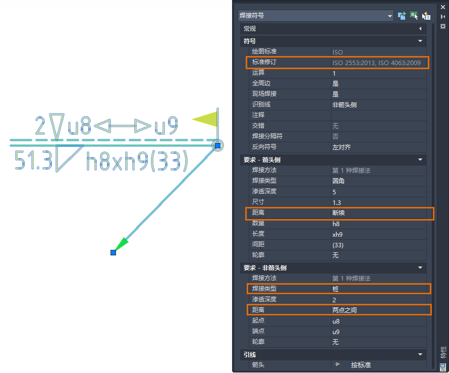焊接符号在 AutoCAD Mechanical 2021 工具集中已更新为支持最新的 ISO 和 DIN 标准修订(ISO 2553:2013 和 DIN EN ISO 2553:2014)。更改包括基本符号和补充符号的修订,以及新的焊接符号(两点之间的距离)。最新修订中还增加了多参照线支持。