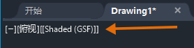 在“着色”视觉样式中,“(GSF)”会显示在视口控制中,以指示技术预览处于活动状态并且正在使用现代图形系统。