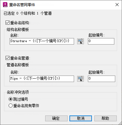 您可以选择仅对管道、仅对结构或对管道和结构进行重命名/重新编号。