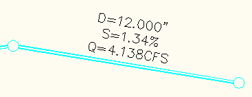 流量标签在纵断面图(可在其中调整每个管道的管道内底夹点直到达到所需管道流量)中尤其有效。用户可能需要使用 REGEN 命令按照每次管道内底升高或降低的迭代来重新生成图形。