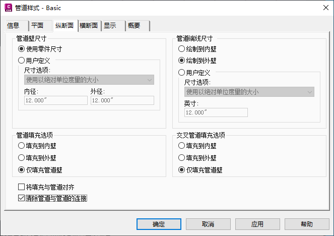 使用“管道样式”对话框中的“清除管道到管道的连接”选项(如图 4 所示)来改进管道纵断面的外观,以便管道可以按预期以图形方式显示为排列成行。默认情况下未启用该选项,因此用户必须选中它。
