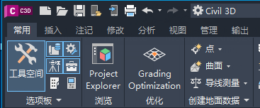 安装完成后,可以从 Autodesk Civil 3D 主功能区的“常用”选项卡访问 Project Explorer 窗口。
