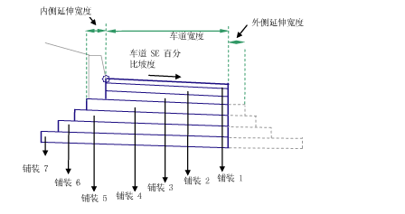 通过指定内侧铺装层延伸宽度和铺装层宽度,以便自动计算外侧铺装层。
