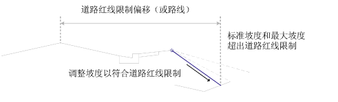 如果标准坡度位于道路红线范围以外,则将使用更陡的坡度。如果该更陡的坡度仍然位于道路红线范围以外,则用户可以选择对行为进行控制。