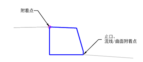 | 附着点 | 指定路缘附着点所在的位置。 | 止口/路缘后面/流线曲面 |