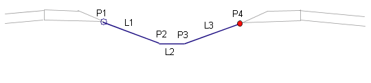 附着点位于左侧或右侧中间带沟渠坡度的外侧边缘,且上一次定义的标记点必须位于相对的外侧边缘上。点的左右关系无关紧要。