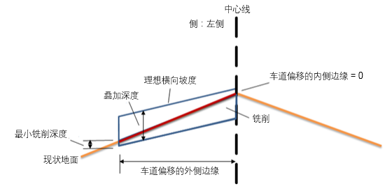 外侧或内侧车道超高将替换理想横向坡度。铺装层的更正的横向坡度值将由横断面的超高表定义,而不是由理想横向坡度定义。