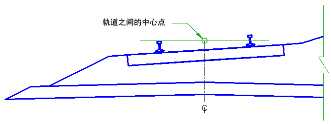 若将“轴方法”设定为“中心基准线”,则各以铁路超高值的一半调整两条轨道,外侧轨道向上而内侧轨道向下。