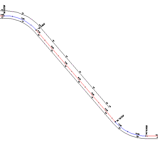 现在,该偏移路线在桩号 10+00 处终止,并且偏移量是中心线对侧的偏移路线的两倍。