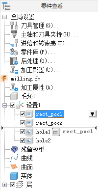 可看到,仿真首先执行所有点钻操作,然后钻孔,然后进行型腔的粗加工和精加工铣削。