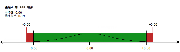 “RSS 结果”图在图上方显示了 RSS 分量的计算平均值和标准偏差参数。它还显示了一条表示分析的统计特性的正态曲线。