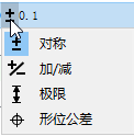 使用位于形位公差符号 (FCF) 左侧的下拉列表选择控制的类型,并设置所需的公差值。有时,您可以将材质修改器添加到正在受控制的要素或基准要素。若要添加材质修改器,请分别使用公差旁边的下拉列表或基准要素名称。