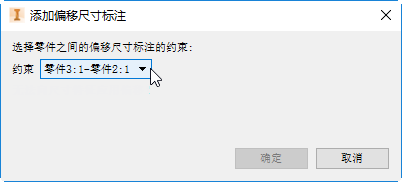如果被某个约束参照的一个要素是尺寸要素,则无法定义偏移。例如,具有关联尺寸标注的圆柱或宽度。此类情况将以浅灰色字体显示。如果当前叠加中的所有装配约束涉及尺寸要素,则在“添加偏移尺寸标注”对话框中会显示以下消息:将显示在“添加偏移尺寸标注”对话框中,且“确定”按钮将处于禁用状态。