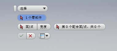 在充分定义叠加分析后,将会显示一个新的小工具栏,使您可以指定叠加环中包含的零件。这些选择通常称为装配约束曲面。