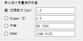 指定最常用于统计分析的质量指标及关联的质量目标。可以更改定义的每个叠加的此设置。