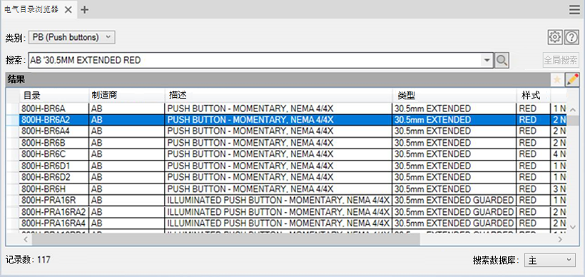 在结果窗格中单击目录值,此时将显示一个小型选项板。如果有任何零件关联到该目录值,则这些零件会显示在该选项板上。