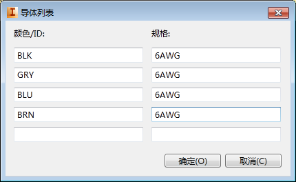 单击以打开“导体列表”对话框,您可以在其中添加导体并定义每个导体的颜色和规格。