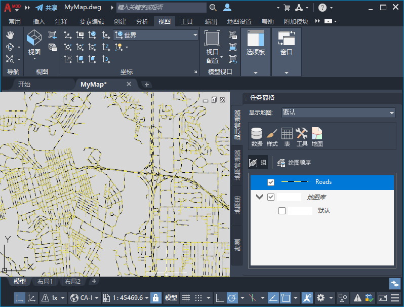 请注意,地图文件与 AutoCAD 图形一样,使用文件扩展名 .dwg。两种文件类型均使用相同的基本文件格式。