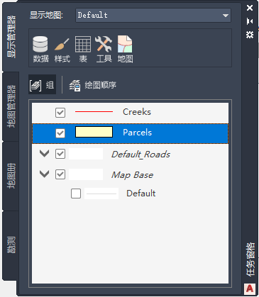 AnnotationTutorial.dwg 中的地块图层是地理空间要素类。实际数据存储在名为 Parcels.sdf 的 SDF 文件中。地图将连接到该文件,并显示地图中地块的几何图形和数据。您可以采用您所喜爱的任何方式设置地块样式。设置样式不会影响数据存储本身。样式设置与用于连接到数据存储的信息一起保存到地图中。