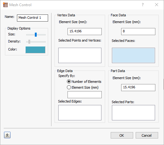 此工具允许您针对选定的顶点、边、面或零件定义局部单元大小。您添加的每个网格控制将在浏览器(模型树)中的“网格模型”