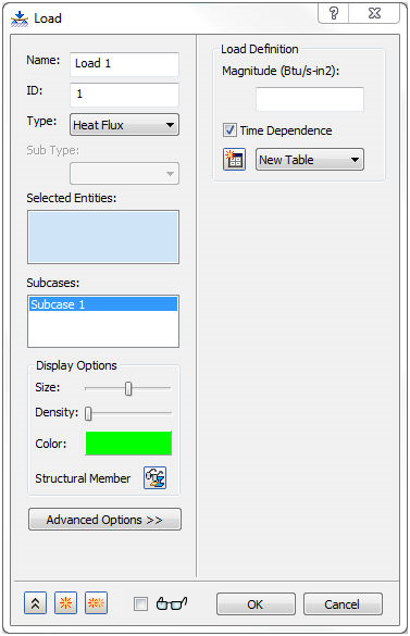 热通量可应用于曲线和曲面。当应用于曲线时,值输入将成为节点热输入。但是,载荷定义中的单位不会发生更改。