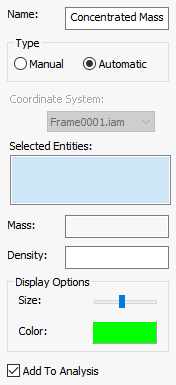 如果在“集中质量”窗体中选择“自动”选项,则以下部分将可用: