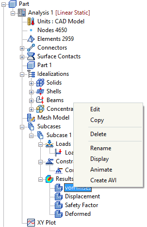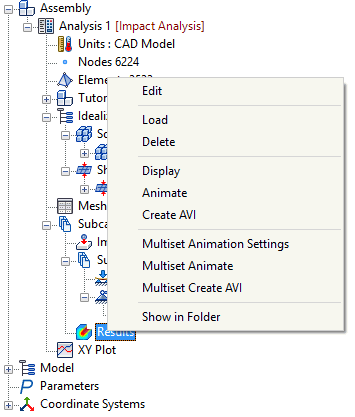 运行分析后,“结果”将被加载到“模型”树的各“子工况”下。