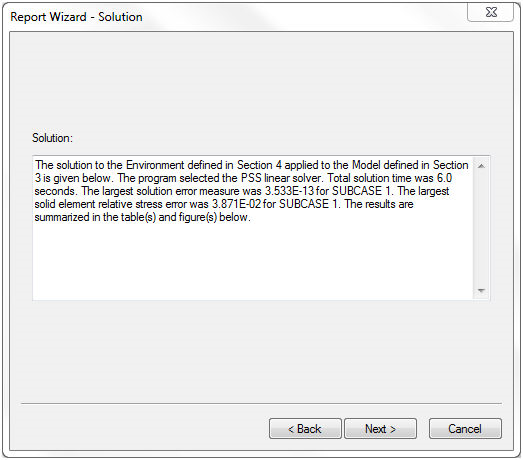 此时显示“报告向导 – 求解”窗口。编辑并添加所需的信息,然后单击“下一步 >”。