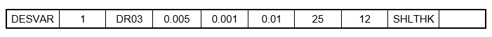 | DVTYPE | Design variable type, one of the following character variables: SHLTHK | Character | See Remark 2 |