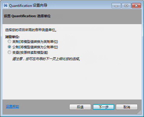 3.变量:使用现有的模型值。您可以在下一向导页面中更改每个单独算量属性的单位。