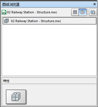 “图纸/模型”选项板会列出多页文件中的所有图纸和模型。该选项板顶部的标签会指示当前在 Navisworks 中打开的文件。图纸/模型可以采用列表视图或缩略视图的形式表示。默认情况下,显示顺序与原始文件相同。当前选定的模型/图纸以着色的背景指示,当前已在“场景视图”中打开的模型/图纸以黑色图形边框指示。当打开一个多页文件时,并非所有图纸/模型都已准备好用于 Autodesk Navisworks。需要准备的图纸/模型将以“准备”