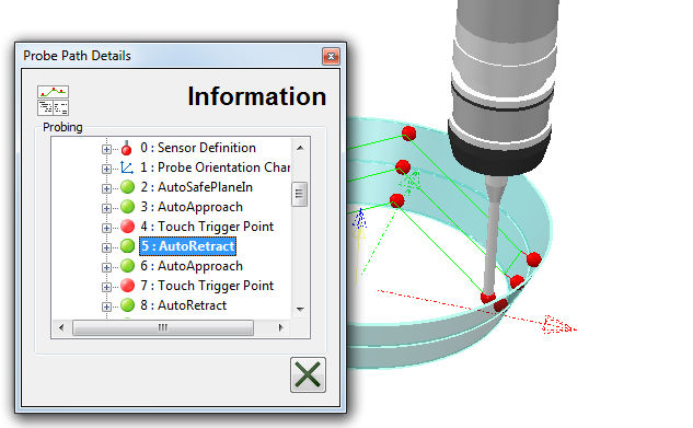 选择下一个移动条目以在 CAD 查看中显示测头移动。