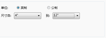 - 在“尺寸自”中,指定一个初始尺寸范围。例如:4” 至 12”。