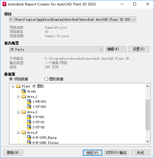 - 单击“打印/输出”以生成预定义的格式,例如 PDF。