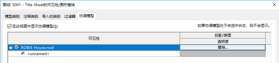 “可见性/图形”对话框中的“协调模型”选项卡包含以下设置: