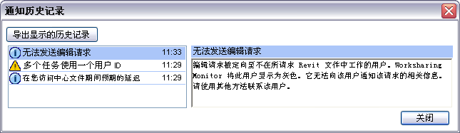 在您关闭 Worksharing Monitor 时,将放弃“通知”历史记录。