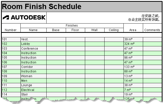 使用格式设置工具以最佳方式传达明细表信息。如果您有要用于明细表视图的办公室标准,则明细表格式设置将可用于自定义明细表在 Revit 中的默认显示方式。在模型模板文件中,设置明细表并修改页眉格式设置。将图元添加到模型中时,将对明细表进行设置格式,然后即可将其放置在图纸上。