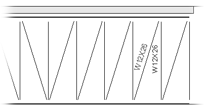 6. 在编辑桁架后,若要确保新腹杆已标记,请指定桁架的“标记新成员”属性。在“属性”选项板的“标识数据”下,从“在视图中标记新构件”下拉列表中选择“无”或一个平行立面视图。