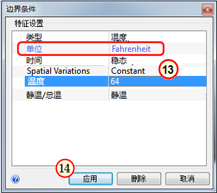 13. 确认“单位”为“华氏度”。在“温度”行中,输入 64。