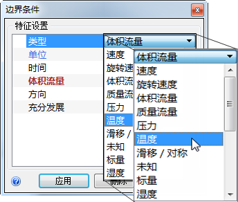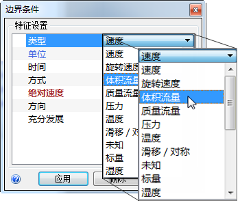 6. 在“类型”行中,选择“体积流量”。