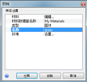 在“材料”快速编辑对话框中,应用以下设置:类型 = 固体。