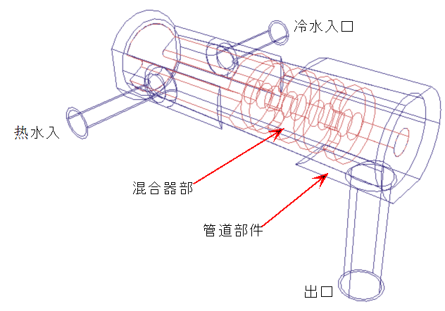在本教程中,我们将研究从简化的家用水龙头模型中流出的水流。热水和冷水进入水龙头,在混合区域中交汇,然后从出口流出。