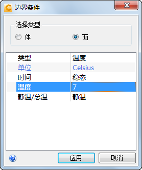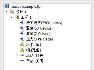 此模型包含一个速度、两个温度以及一个压力边界条件。