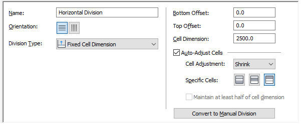If you are defining a vertical division, the cell dimension is the length of the cell from mullion to mullion. If you are defining a horizontal division, the cell dimension is the height of the cell.