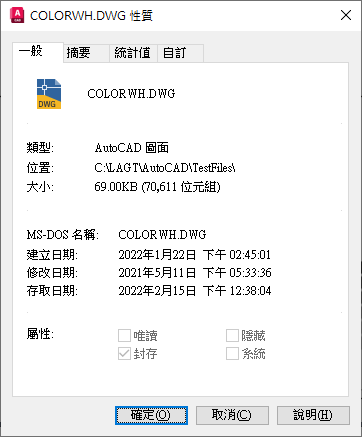 指示此檔案是系統檔案。圖面不能有「系統」屬性設定。