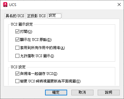 顯示並修改與視埠一起儲存的 UCS 圖示設定與 UCS 設定。