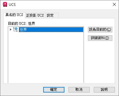 顯示提供有 UCS 座標資料的「UCS 詳細資料」對話方塊。