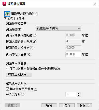 設定新網面物件的平滑度等級。(FACETERSMOOTHLEV 系統變數)